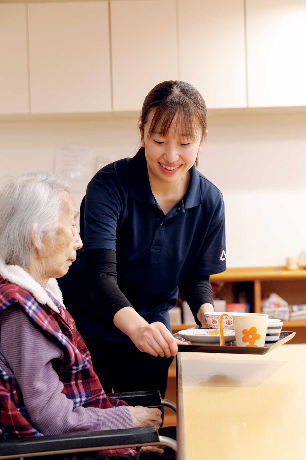 施設見学時に感じた、利用者様と職員の穏やかな雰囲気に惹かれて入職しました。現在はプリセプターとして後輩をサポートしていますが、コミュニケーションの難しさを実感する毎日です。試行錯誤が続きますが、利用者様から「今日も来ていたんだね、安心したわ」と声を掛けていただけると、私もホッとしてうれしい気持ちになります。今後は、利用者様の急変時など、緊急時にも焦らず落ち着いて動けるようになりたいです。