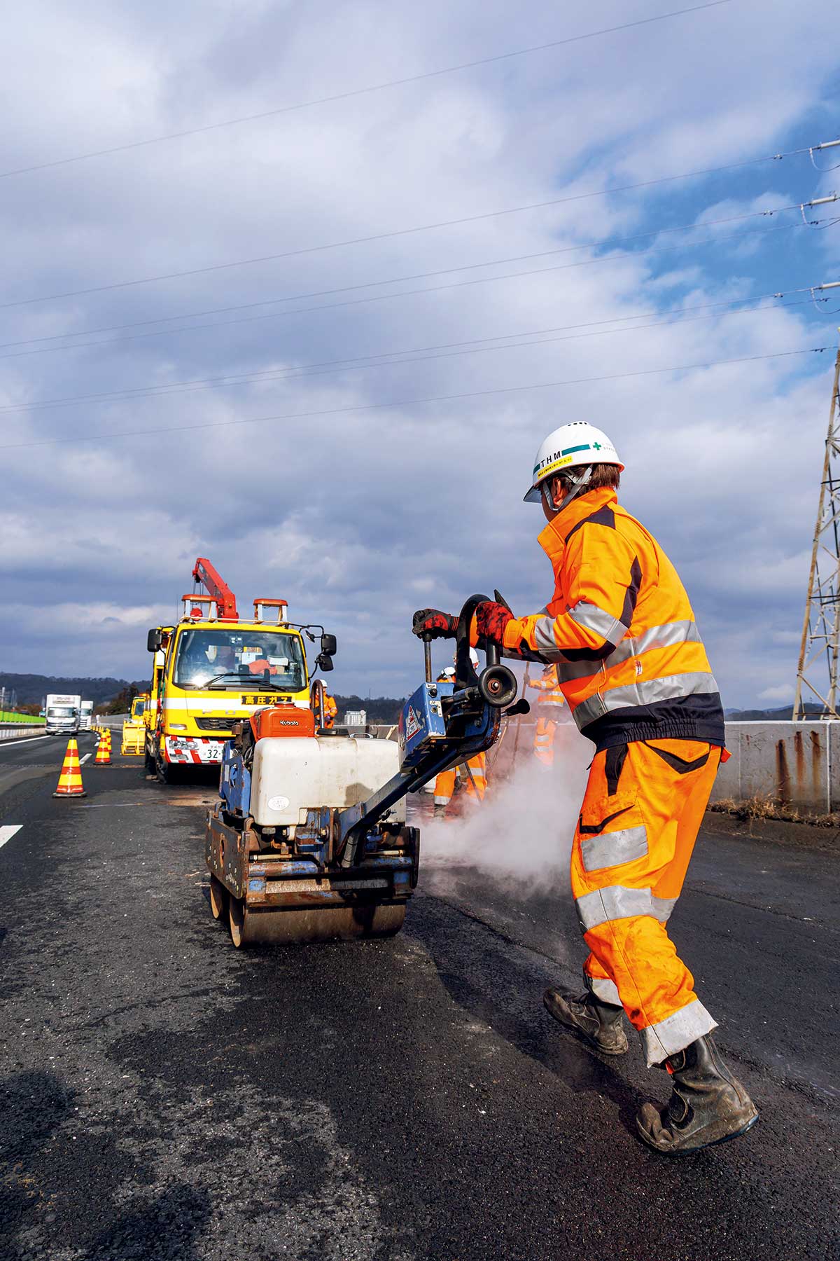 高速道路の維持修繕作業を担う会社として、1988年に設立された。東北の高速道路の一部を事業区間とし、交通インフラを守ることで、お客様の生活や交通を支える、社会的使命の大きい企業である。現場での業務は、高速道路の補修、交通規制、清掃・植栽作業、除雪作業の他、休憩施設の清掃など多岐にわたる。