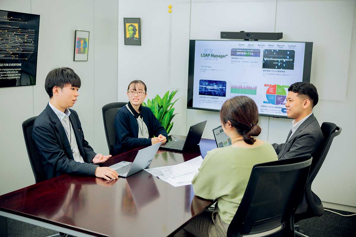 同社のスローガンは「明るく楽しくやりがいのある職場」。上下関係に捕らわれない風通しのよい職場環境が確立されている。チャレンジ精神や向上心のある社員には、1年目からどんどんチャンスが与えられる企業風土も特徴で、部署やポジションの垣根を越え、自由な発想によるアイデアが続々と誕生。新入社員研修や資格取得サポートなど、個々の実力を高める制度も整う。「その源となっているのが、〝人〞を大事にしたいという思い。なぜならば弊社の価値であり財産は、〝技術=人〞にほかならないからです」と市田尚宏社長。将来性豊かなIT業界の中でも常に成長を続ける同社で、存分に実力を発揮してほしい。