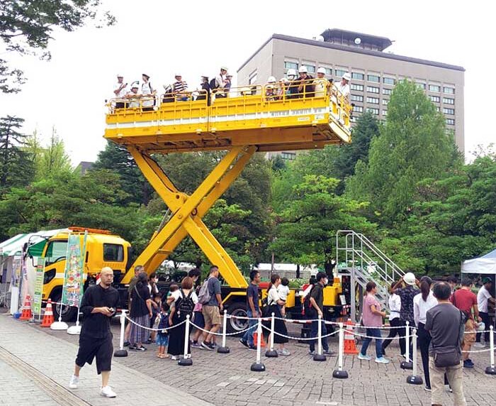 NEXCO東日本東北支社主催のイベント「ハイウェイフェスタとうほく」にも参加。子供達に大人気の高所作業車の展示や乗車体験を通して、高速道路を支える仕事をより身近に感じられる取り組みを行っている。