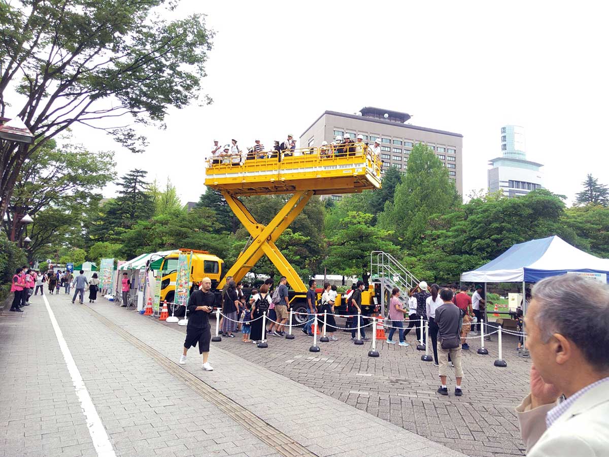 NEXCO東日本東北支社主催のイベント「ハイウェイフェスタとうほく」にも参加。子供達に大人気の高所作業車の展示や乗車体験を通して、高速道路を支える仕事をより身近に感じられる取り組みを行っている。