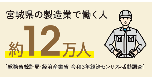 ★宮城県の製造業で働く人約12万人[総務省統計局・経済産業省 令和3年経済センサス-活動調査]