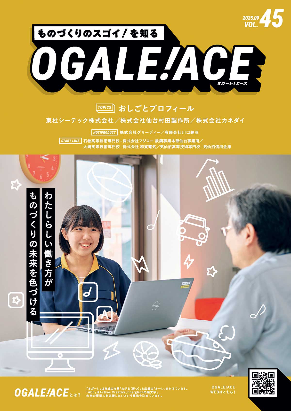 『OGALE!ACE』は、宮城県内の優れた企業や若手技術者などを紹介し、ものづくり企業の魅力を発信する“ものづくり産業広報誌”です。宮城県内の高校、高等技術専門校などに配布するフリーペーパーに加えて、ウェブサイト、YouTubeでのコンテンツも充実。