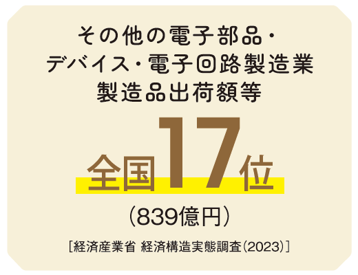 ★その他の電子部品・デバイス・電子回路製造業製造品出荷額等全国17位(839億円)[経済産業省 経済構造実態調査(2023)]