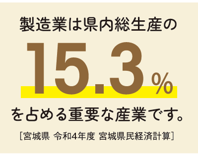 ★製造業は県内総生産の15.3%を占める重要な産業です。[宮城県 令和4年度 宮城県民経済計算]