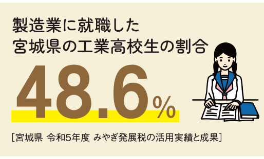 ★製造業に就職した宮城県の工業高校生の割合48.6%[宮城県 令和5年度 みやぎ発展税の活用実績と成果]