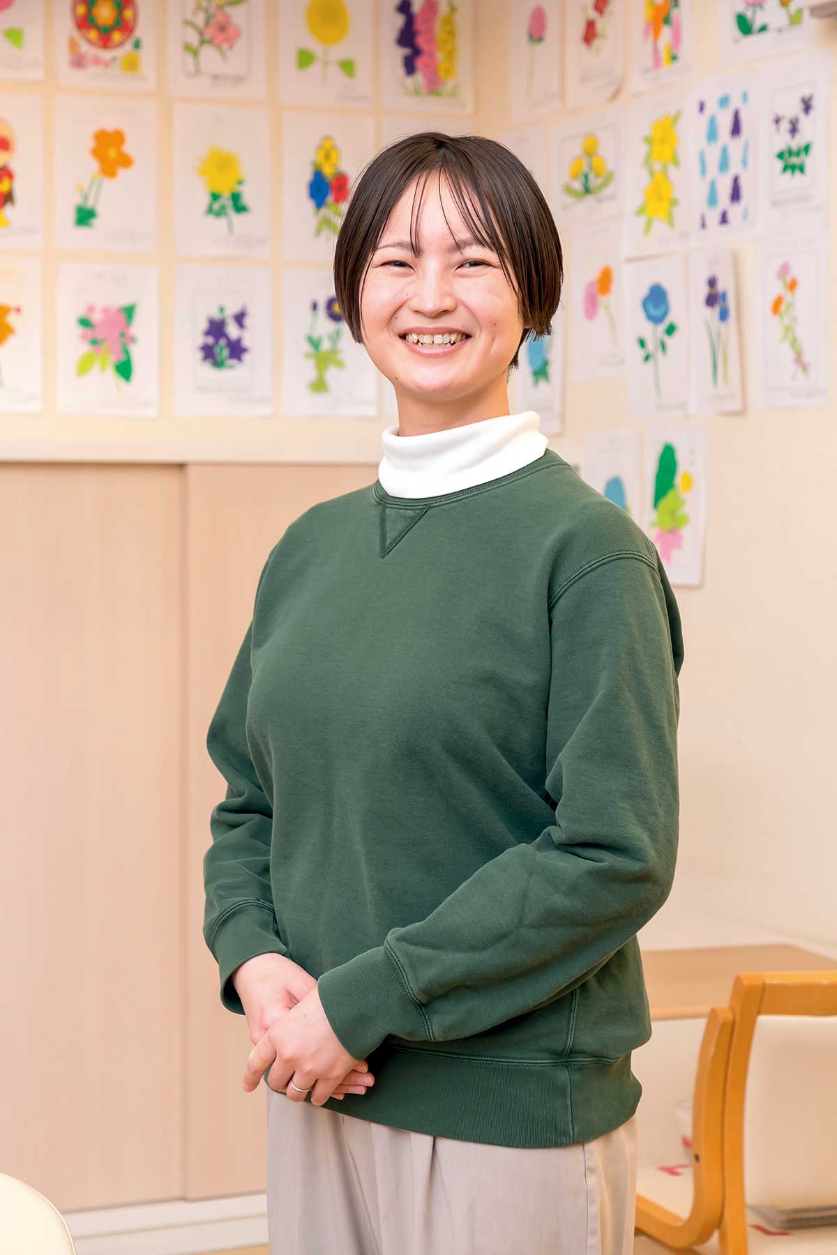 結婚を機に仙台に移り住むことになり、法人の理念や職場の明るい雰囲気に好感を持ってここを選びました。入職後に産休・育休を2回経験し、復帰後は9時~16時の時短で勤務しています。勤務時間は自分の生活に合わせてもらえるので本当に助かりますね。この仕事をしていてうれしい瞬間は、利用者様のできることや興味の対象が増えた時。これからも利用者様と関わりながら、お一人おひとりが輝けるような支援をしていきたいです。