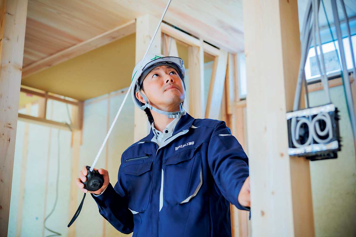 私は主に木造住宅の施工管理を担当しています。現場で職人さんたちを統括し、工程管理、原価管理、品質管理、安全管理などを行いながら、計画通りに工事が進行するよう段取りを組んでいます。最も達成感を感じるのはやはり竣工時。自分が関わった建物が形となり、誰かのお役に立つことに大きなやりがいと喜びを感じています。賑やかでアットホームな社内の雰囲気も働きやすさにつながっています。