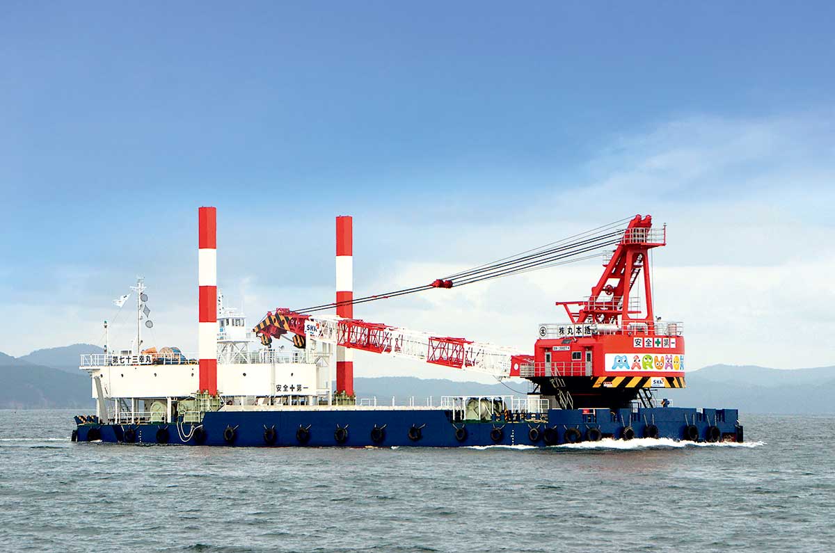 港湾工事、河川工事、島嶼工事等で必要な船舶を多数保持。地域のインフラ整備等に迅速に対応できる体制を整え、広く活用することで、大型化・多様化する海上土木工事施工の大きな力となっている。