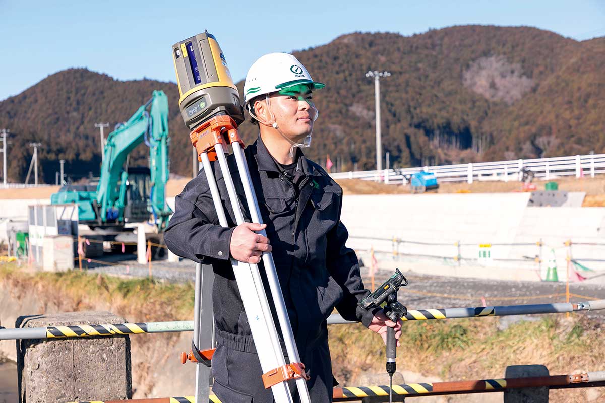 宮城の公共工事を中心に、道路や河川をはじめとする社会インフラ整備に取り組み、2025年には創業35周年を迎えた『久我建設』。工事の現場を支えているのは、土木・建築工事の施工計画を立て、安全・工程・品質・予算を管理する技術者と、現場に立ち構造物を造り上げる土木作業員たち。チャレンジ精神と創意工夫を発揮できる仕事に携わり、地域貢献とやりがいを日々実感できる職場だ。
