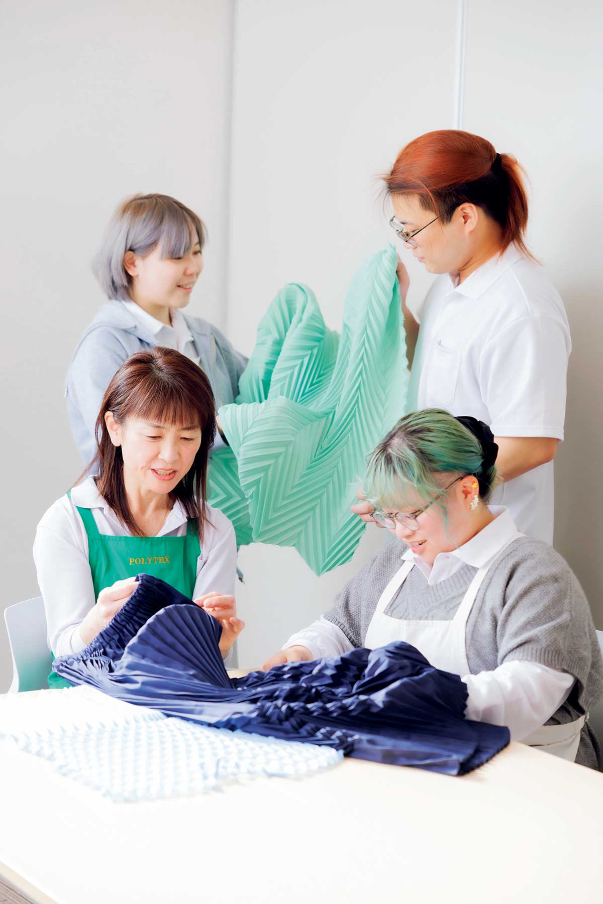 プリーツとは婦人服によく見られる技術で、布をひだ状に加工したもの。体に布を沿わせ動きやすくしたり、装飾を目的につけられたりする。同社が作り上げるプリーツは、メーカーの求める複雑かつ多岐にわたるデザインにも対応が可能で、国内外から高い評価を得てきた。時代や流行の変化にしなやかに対応しながら製品開発と技術力向上に努め、常に新しい挑戦をし続ける姿勢もまた、同社の企業価値を高めている。縫製も含めた婦人服の一貫製造をよりいっそう強化するため、2025年6月には第1工場に隣接した敷地に第2工場を増設し、縫製課を移動。顧客の多岐にわたるニーズに沿える体制をさらに整えた。