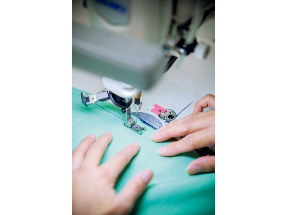縫製課でミシン作業を担当しています。1つのアイテムにチームで取り組み、でき上がったときの達成感はこの仕事ならでは。社内は明るい雰囲気で、上司や先輩に何でも相談や質問ができるので安心です。今は婦人子供服製造技能士2級の勉強中。資格を取ってもっと自信を持って仕事ができるようになりたいと思っています。
