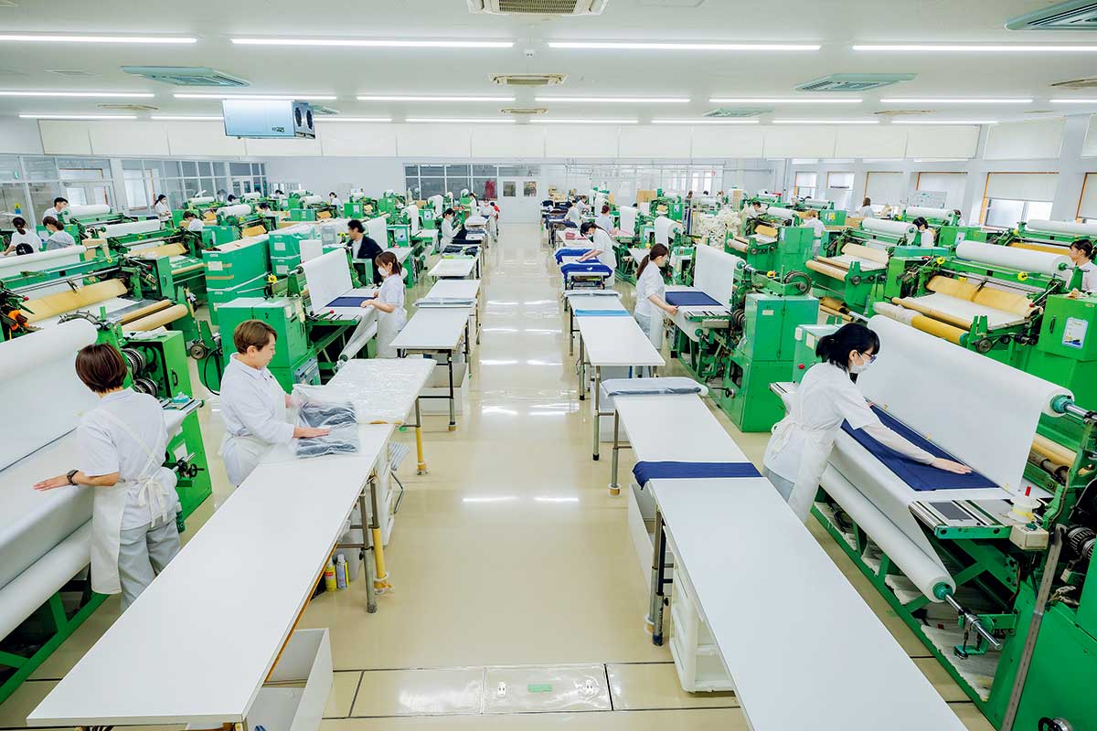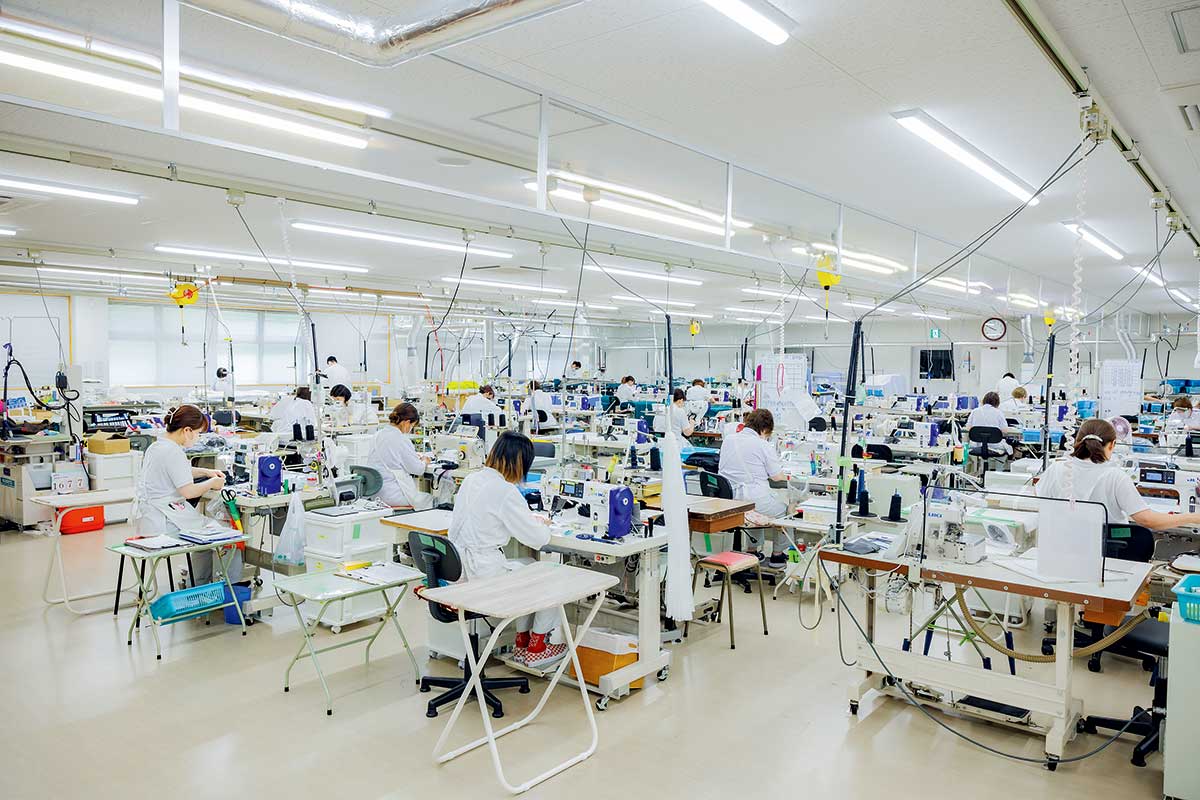 ◯第2工場に移設された広い縫製室。袖やボタンの取り付けなど、仕上げ作業も担う。