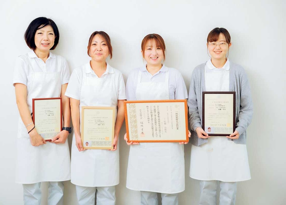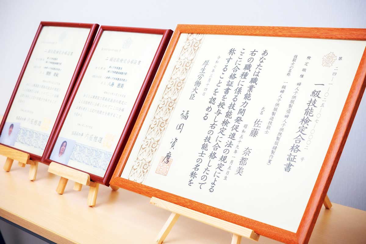 ◯「婦人子供服製造技能士」「パターン技術検定」などの有資格者多数。