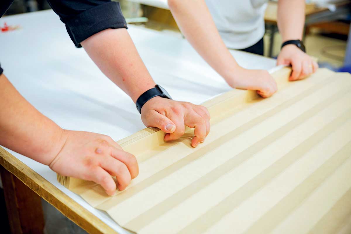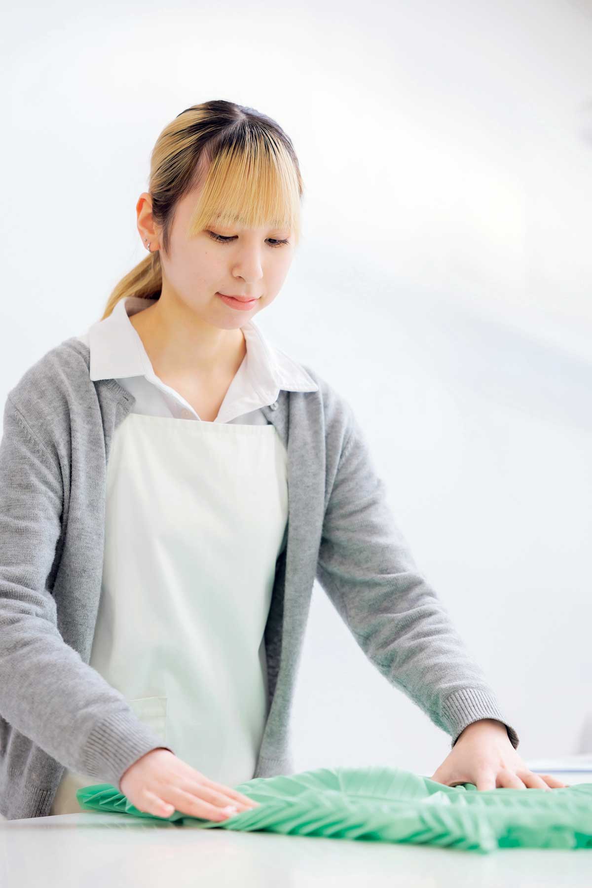 ◯美しいプリーツの保持性を確保するために、さまざまな工 夫をしている。