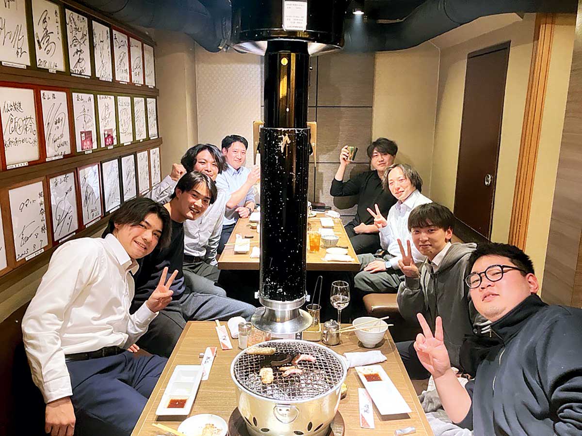 OFF(右):若手講習会の後は、仲間と焼肉へ。おいしいものを食べて心身ともにリフレッシュ。
