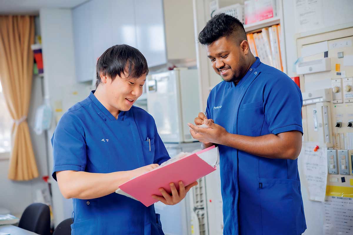 『介護老人保健施設コジ―ケア・ホーム』では、外国人職員も含め介護・医療の両スタッフが連携。