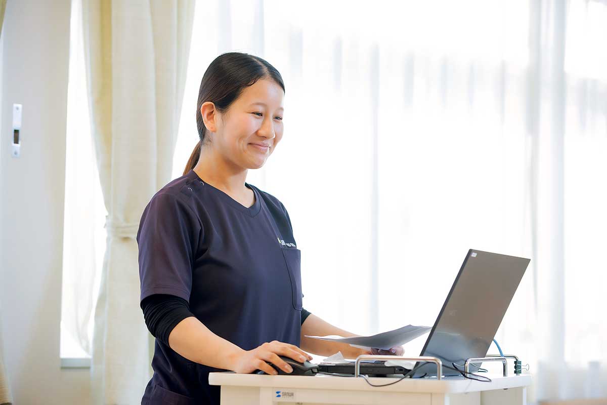 私が現在働く『サテライトけやき』は、病院から退院後「自宅へ戻る」ことを目的としたリハビリ施設。利用者様から「今日は佐々木さんが担当でうれしい」など、感謝の言葉を直接いただける瞬間に、この仕事の醍醐味を感じています。全国老健大会への参加・発表をはじめとした教育研修を積極的に行っており、スキル向上の機会が豊富にある点も魅力です。残業はほとんどなく連休取得も比較的容易なので、福利厚生面の手厚さもありがたいです。