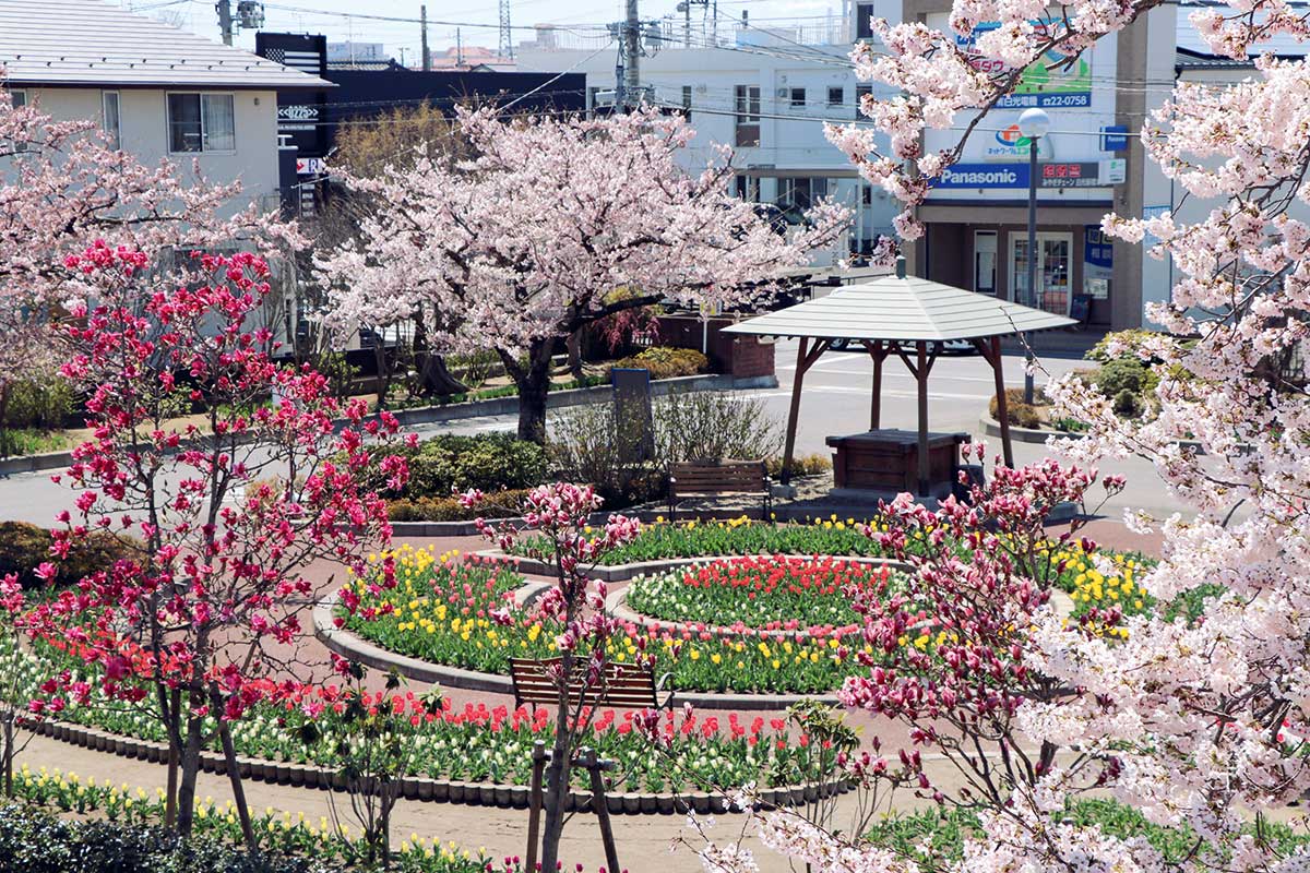 ◯地域に開かれた本社庭園は、憩いの場として親しまれている。