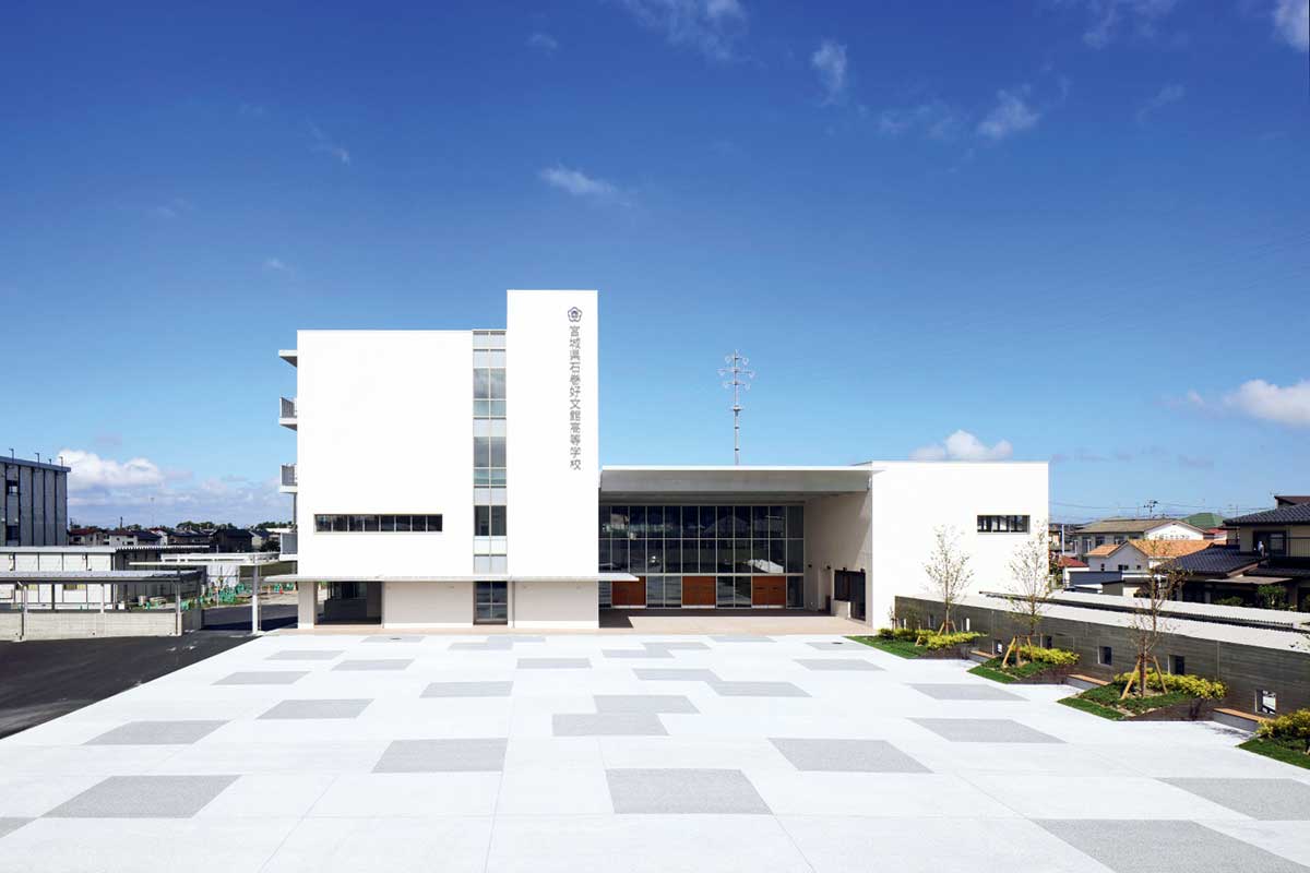 ◯隣接する仮設校舎に配慮して進めた石巻好文館高等学校の改装工事。