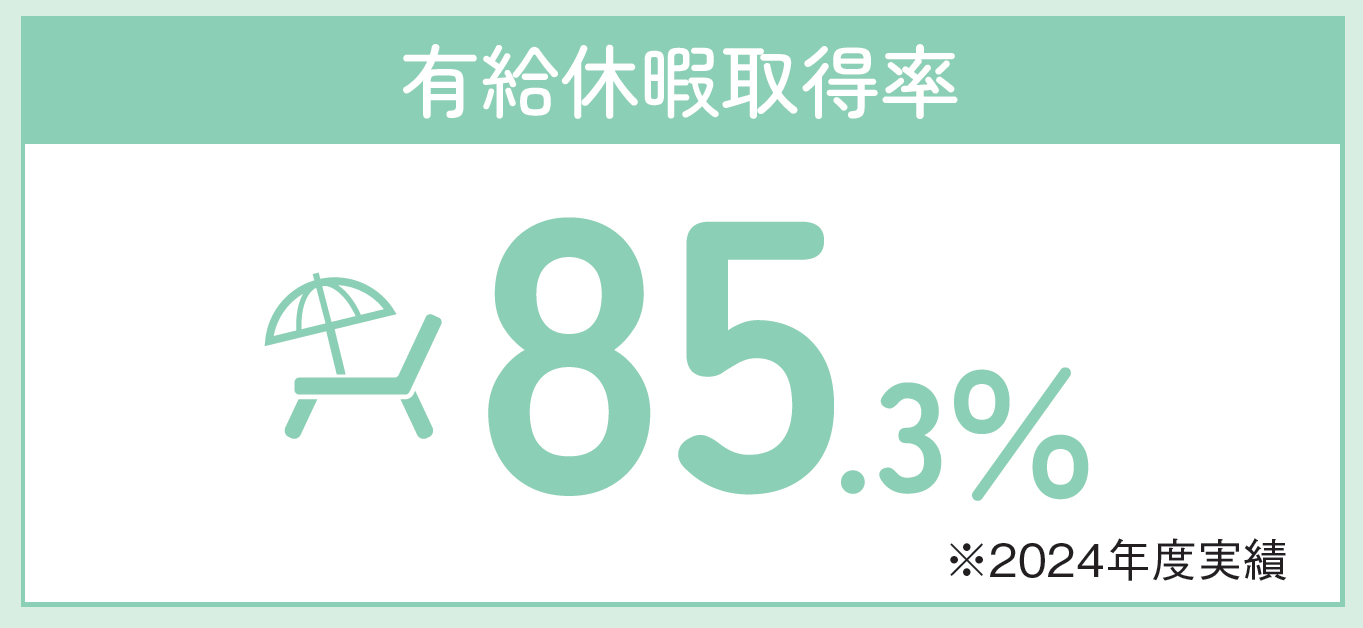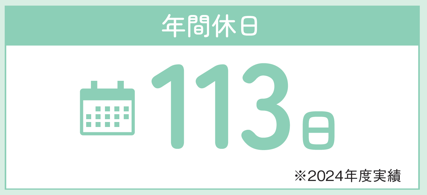 - 完全週休2日制(土・日曜)、GW・夏季・年末年始休暇、有給休暇
