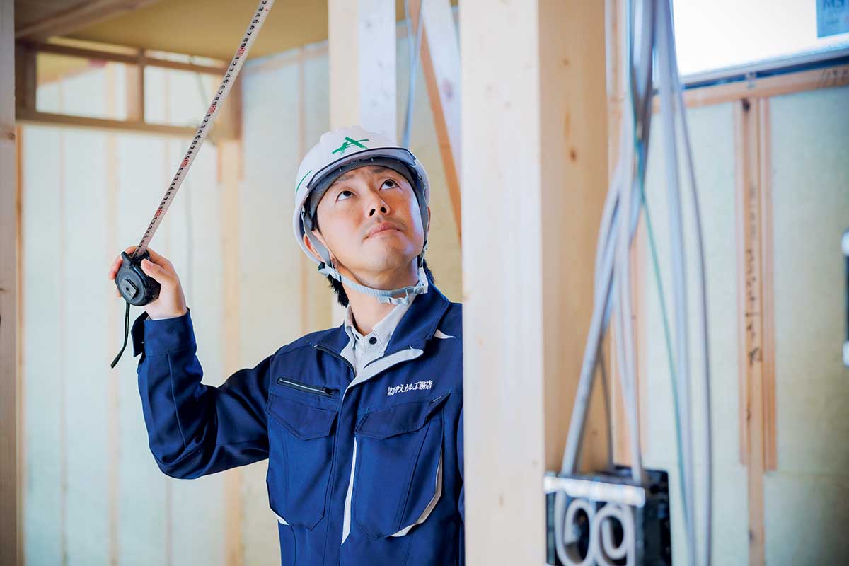 私は主に木造住宅の施工管理を担当しています。現場で職人さんたちを統括し、工程管理、原価管理、品質管理、安全管理などを行いながら、計画通りに工事が進行するよう段取りを組んでいます。最も達成感を感じるのはやはり竣工時。自分が関わった建物が形となり、誰かのお役に立つことに大きなやりがいと喜びを感じています。