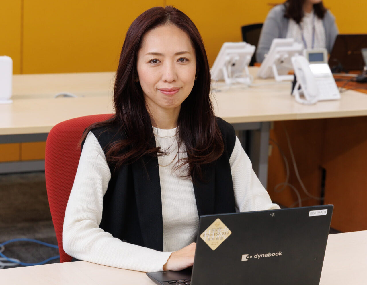 私は子どもの進学のタイミングでキャリアチェンジを考え、『旭陽電気』に入社しました。現在は採用や研修をはじめ、総務部として幅広い業務を担当しています。月に一度の面談やWell-being研修などを通して、従業員一人ひとりが持てる力を存分に発揮できる環境を整えています。